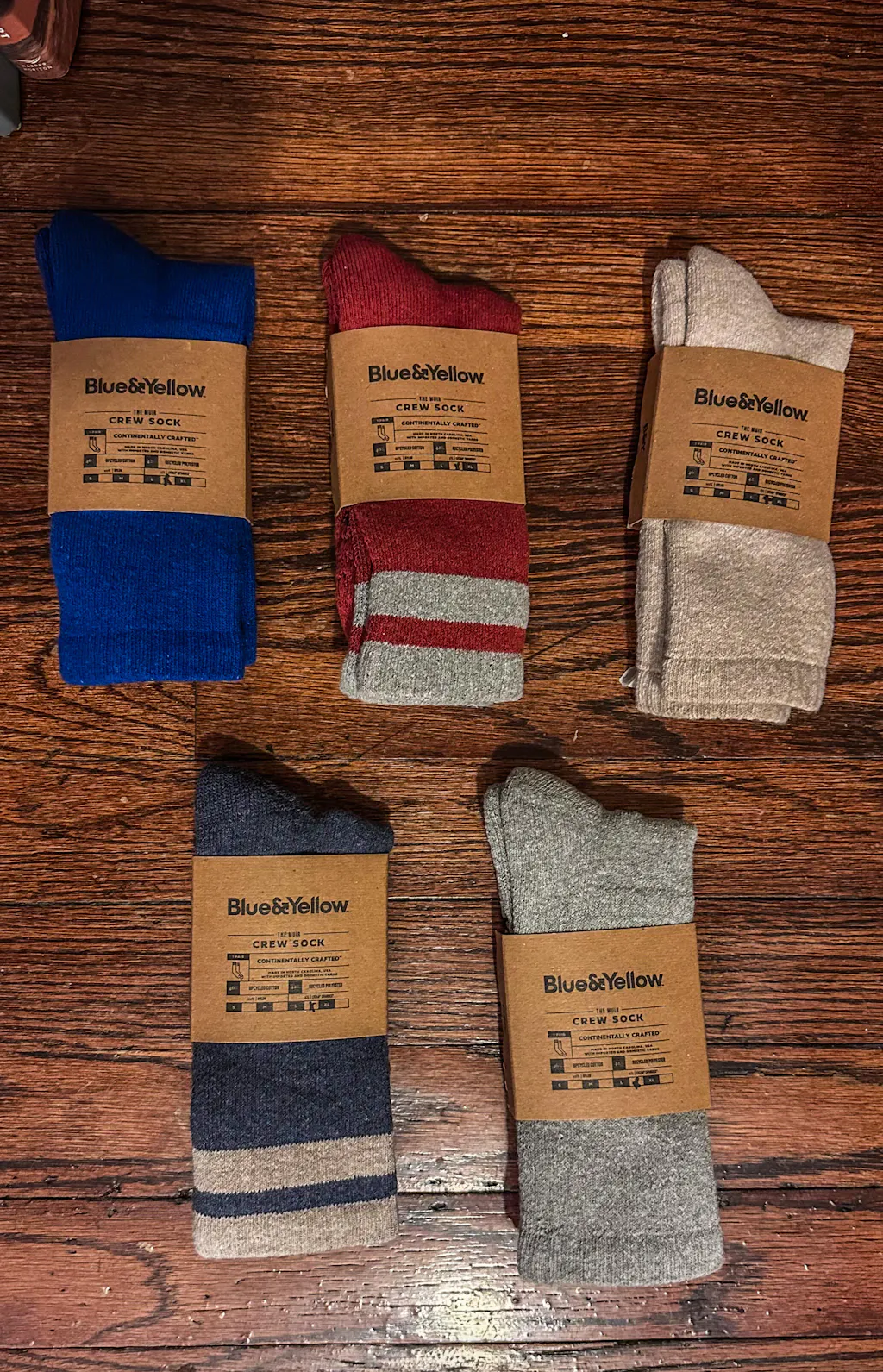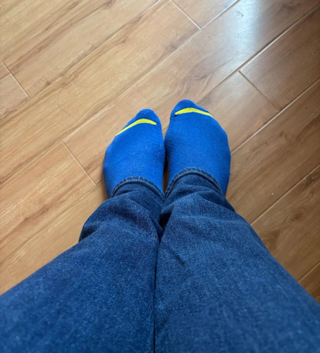 Comfy, moisture-wicking socks made from recycled cotton and plastic bottles turned into polyester. Made in North America. No fluff—just honest socks.